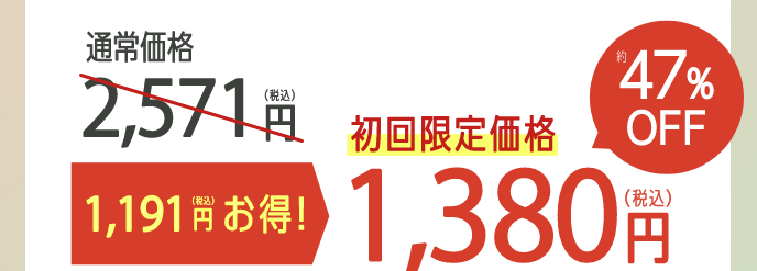 | 価格のお得さ | 初回特別価格(1,380円/3,980円)があります。 | 特別の割引がなく定価、または割高になるケースが多いです。 |