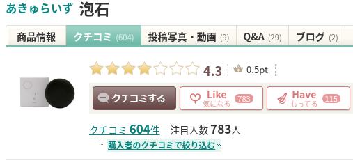 ネット上で様々な検索キーワードや口コミを見かけるあきゅらいずの商品。