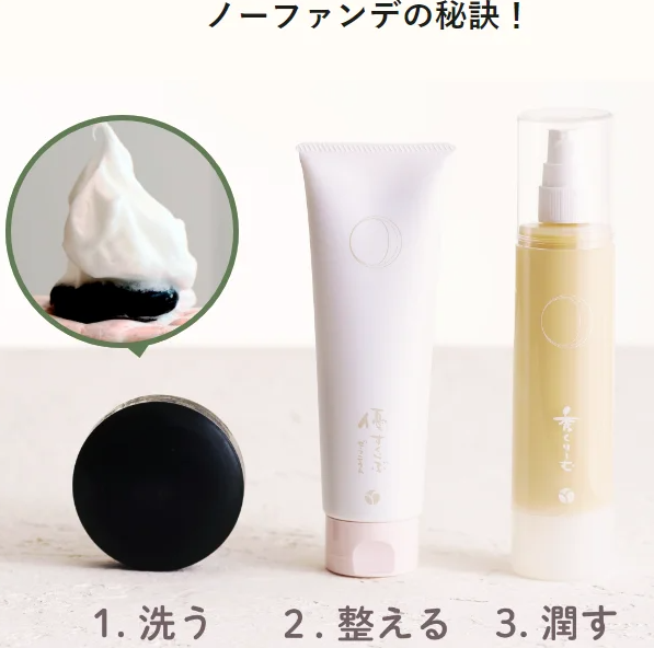 洗う | 泡石ほうせき | 不要な皮脂・角質を落とす | 濃密泡、セラミド・スクワラン配合、弱アルカリ性 |