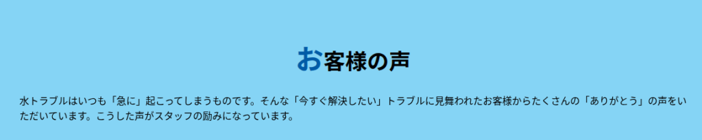 同社クジラの水道屋さんに寄せられたお客様の声より、サービスへの評価に焦点を絞って抜粋。
