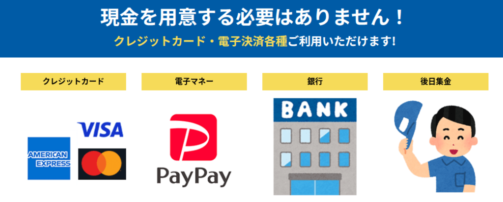 | 銀行振込 | 使える(後日支払い) | 0円 | 会社の利用や、家族が代わりに払う時に便利 |