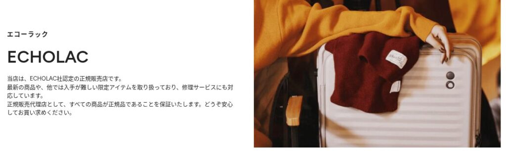 「ECHOLACスーツケース」詳細は↓下記の公式サイトをご確認下さい。