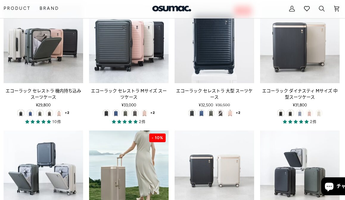 スーツケース1点につき2,000円OFF、さらに2点以上の購入で全商品10%OFFになるという、実店舗ではありえない特典がついています。