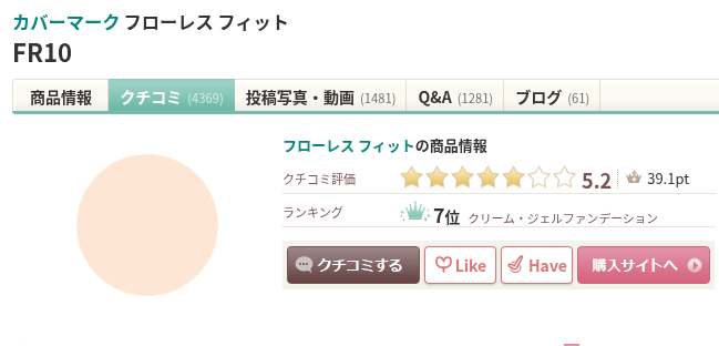 カバーマーク フローレス フィット FR20は、公式サイトでも人気No.1の標準色です。