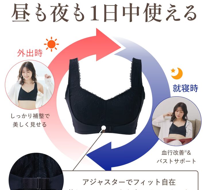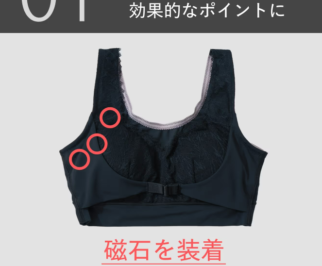 見た目はお洒落なレースのインナーなのに、実は背中側でずっと磁石がコリをほぐしてくれる。