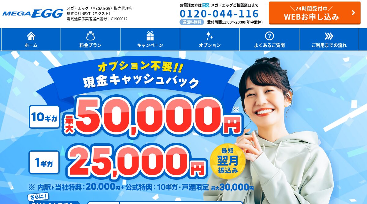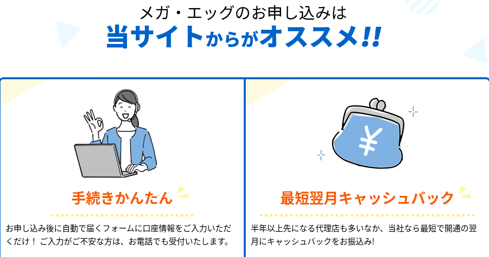 また、NEXT経由でもメガ・エッグ公式のキャンペーン(他社の解約金を肩代わりしてくれるサービスなど)は併用(両取り)できます。