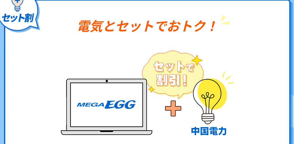 | パターンB | 中国電力利用者 | メガ・エッグ でんき割プラス 中国電力の電気とセットにするだけで、毎月550円の割引がずっと続きます。 電力会社を変える手間なく固定費を減らせます。 |