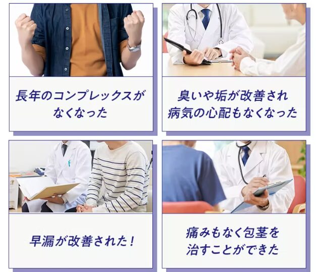 - 見た目は仮性包茎に見えても、上記のような違和感や、性行為への挿入意欲が湧きにくいといった精神的なコンプレックスを抱えている場合、治療の対象となります。
