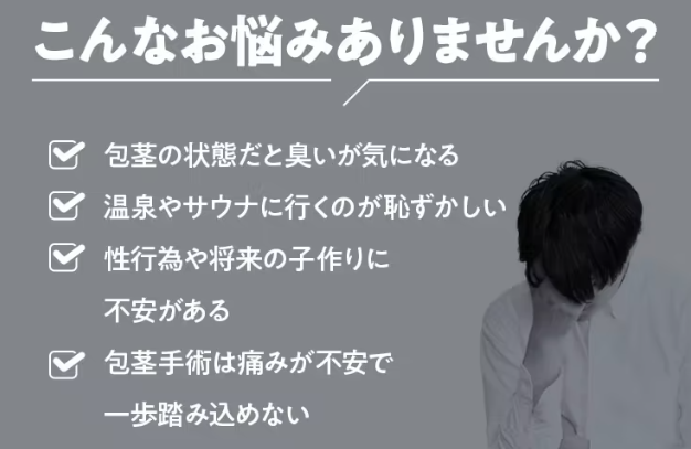 - 包茎を自力で治すための器具(リングなど)や、自然に治癒したという確かな事例は存在しません。放置すれば、その悩みは永久に解決せず、精神的な負担を背負い続けることになります。