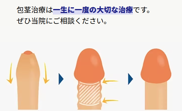 - 真性包茎なら保険適用になりますが、仮性包茎は基本的に自由診療です。