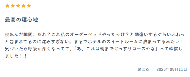 顧客満足度が高い理由の根底には、単なる「寝心地」ではなく、「身体的・精神的な健康が改善した」という使用者の目的達成があります。