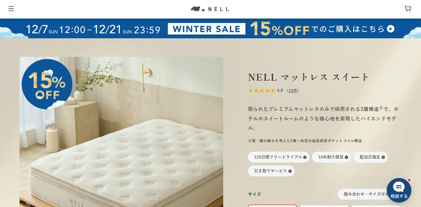 「NELLマットレス スイート」 クーポン15%OFF!最大割引き30000円!