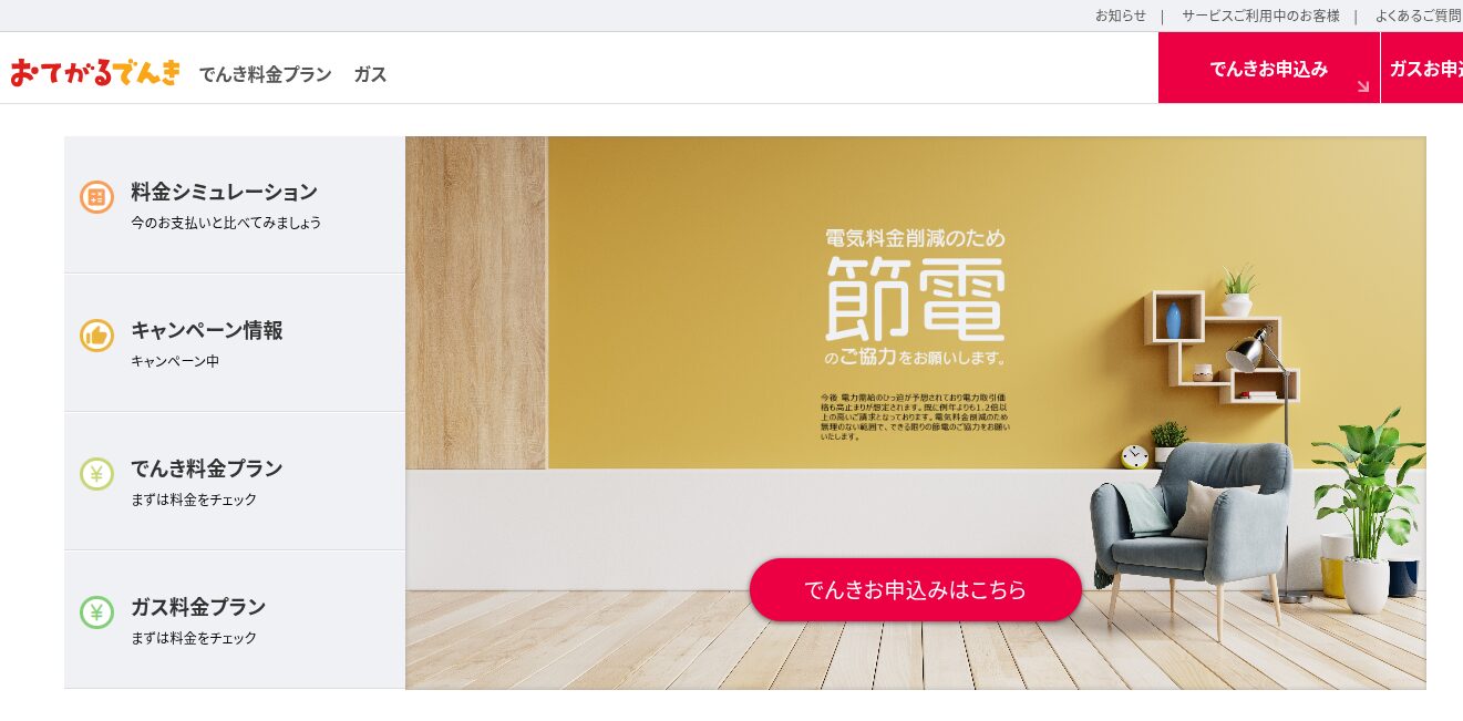 「おてがるでんき」キャンペーンは↓下記の公式サイトをご確認下さい。