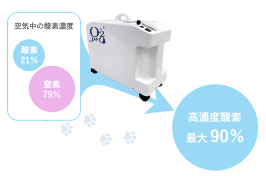 オーツーペットは、ペット専用の酸素濃縮器とケージのレンタルサービスです。