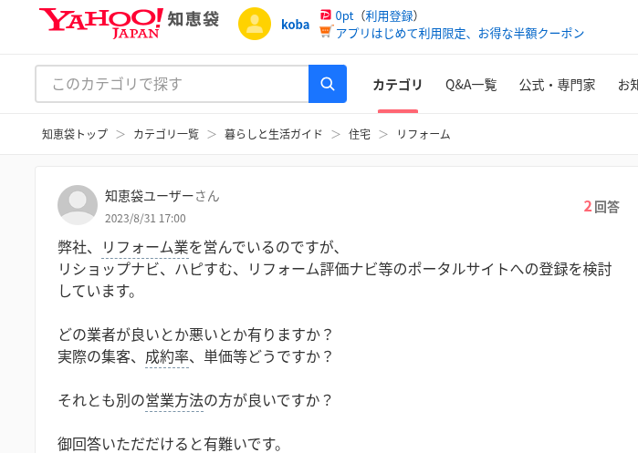 この事は、リフォーム会社が匿名で本音を語るYahoo!知恵袋の質問と回答を、専門家の知見で検証することで、業者が話したがらない費用や競争の仕組みを明らかにします。