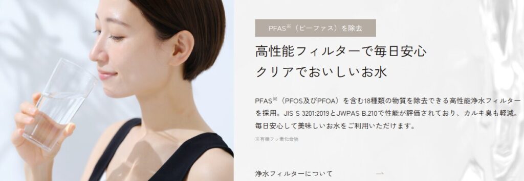 - 「水道水を飲むのに抵抗があったのですが、PFASまで除去できる高性能フィルターと聞いて安心しました。カルキ臭も全くありません。家族の健康を考えても確かな選択です。」