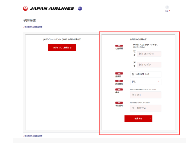 • ANAのウェブページ(予約確認・変更)を開き、正確なローマ字氏名とANAの予約番号を入力。