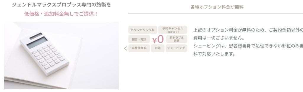 カウンセリング、シェービング代、麻酔代、肌トラブルの診察・治療薬代が無料です。