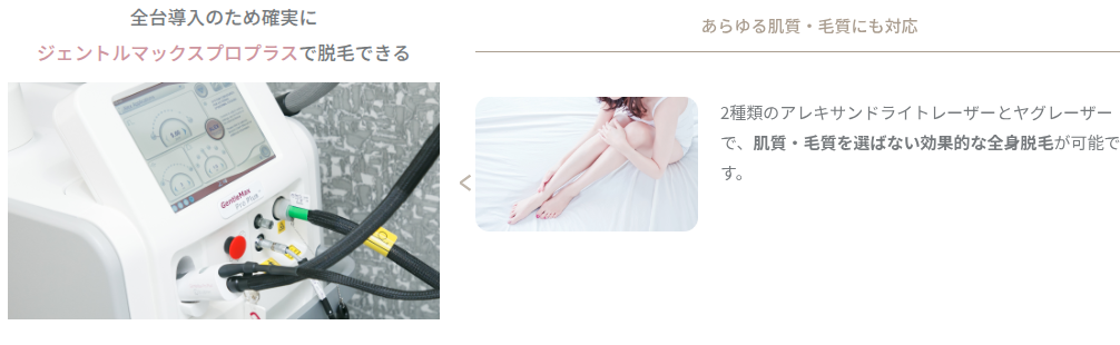 ウィンクリニックは、「ジェントルマックスプロプラス」という優れた脱毛器を全院・全台に一括で導入しています。